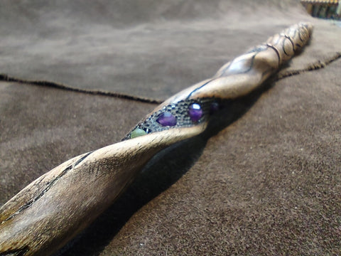 Amethyst, Green Tourmaline, and Ash Wood-burned Magic Wand $185